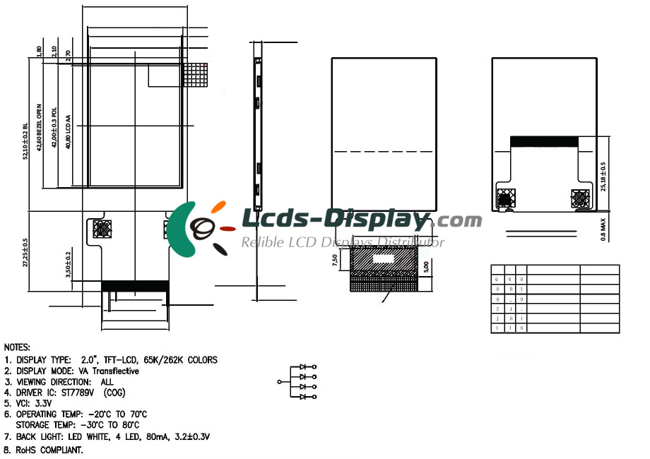 | %s価格 | a-Si TFT-LCD ,2.0 inch, 240×320 |